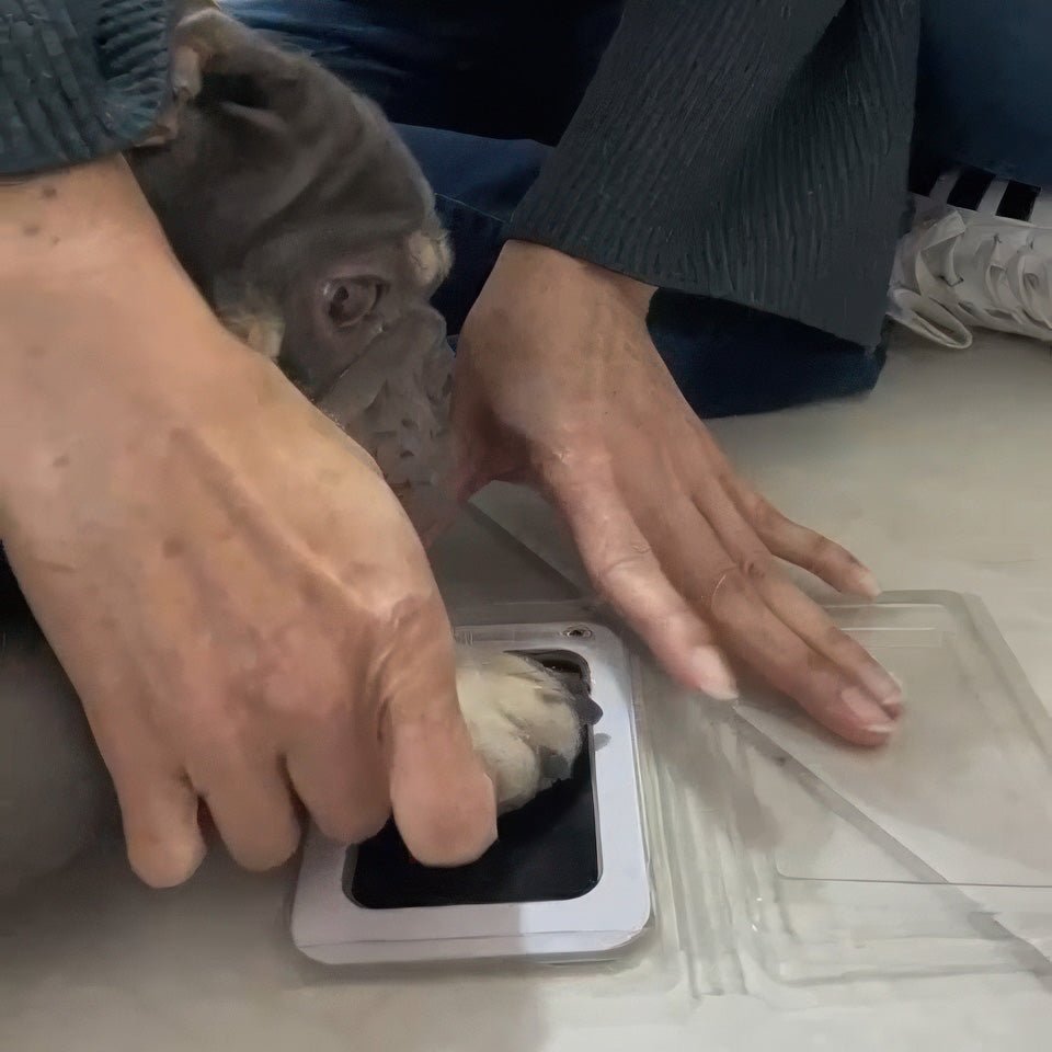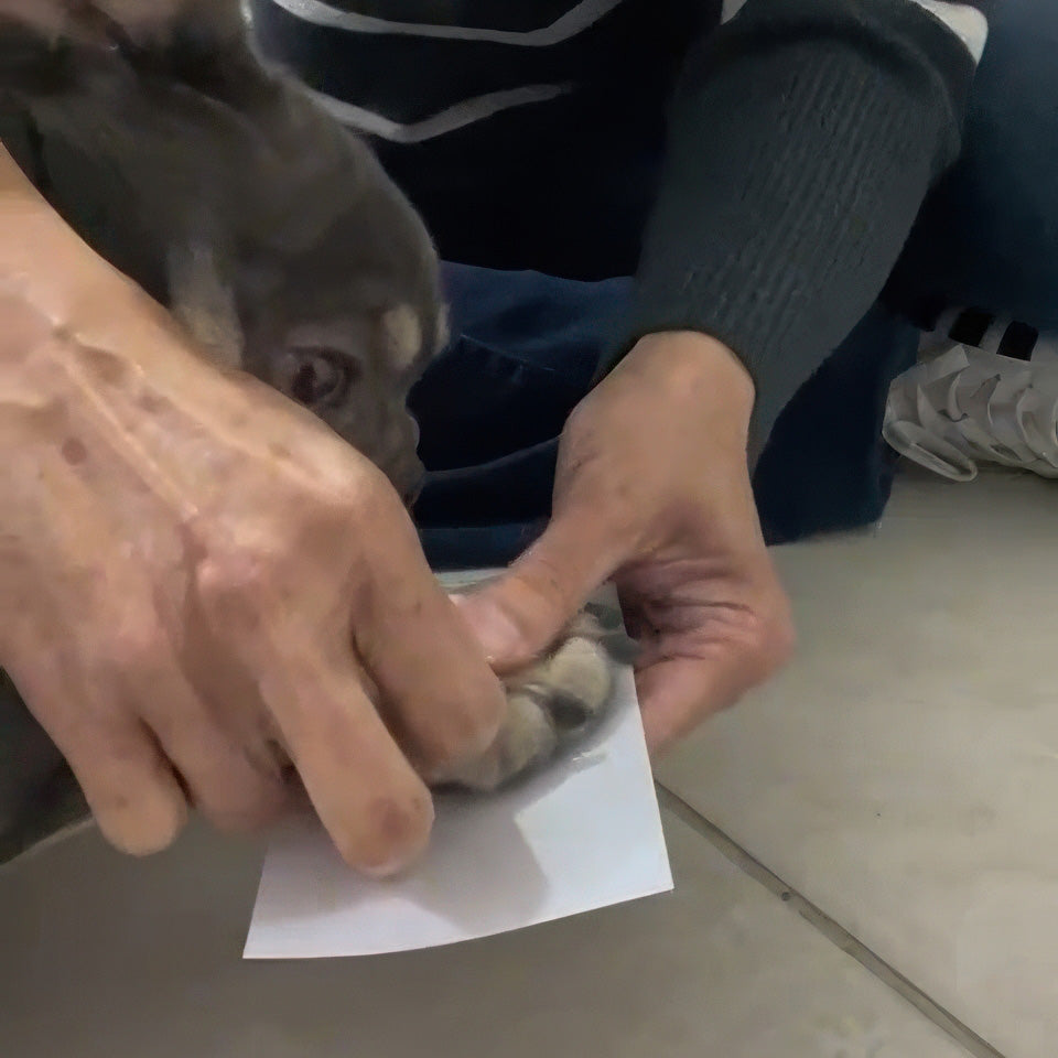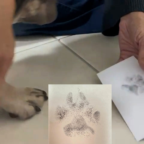 - Prepara una hoja blanca para marcar la huella de tu mascota.